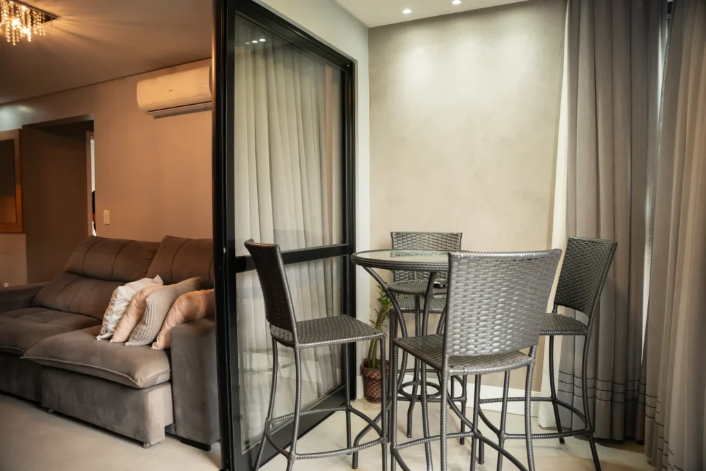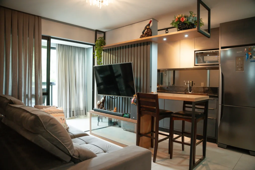 – Sala de estar e jantar integradas;