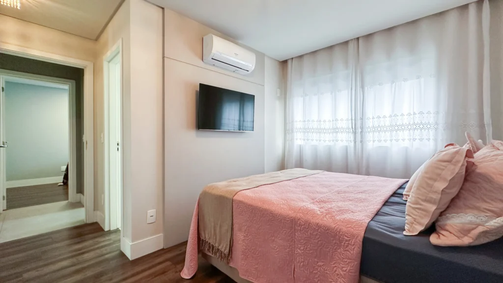 Permanecem móveis sob medida, eletros embutidos e 02 aparelhos de ar condicionado;