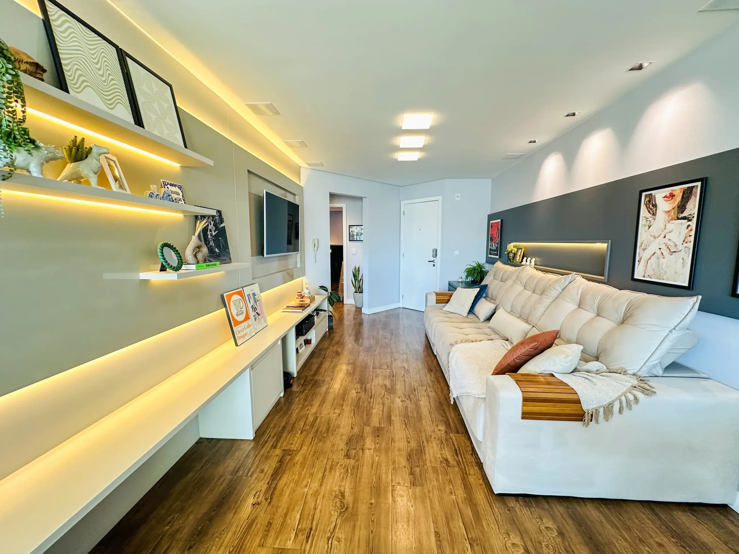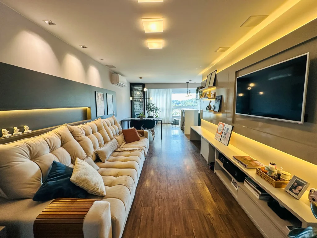 – Rebaixo em gesso com iluminação planejada;