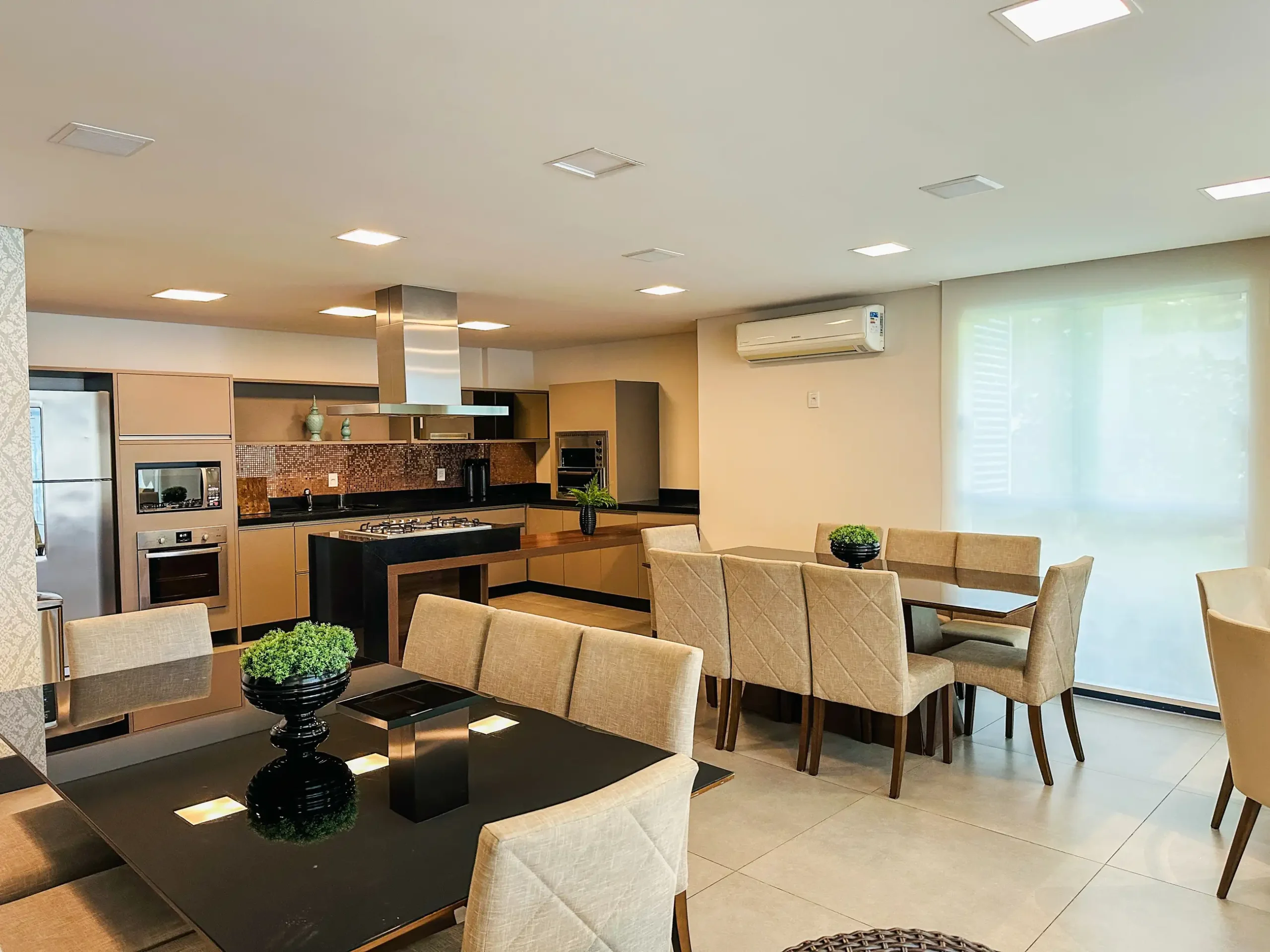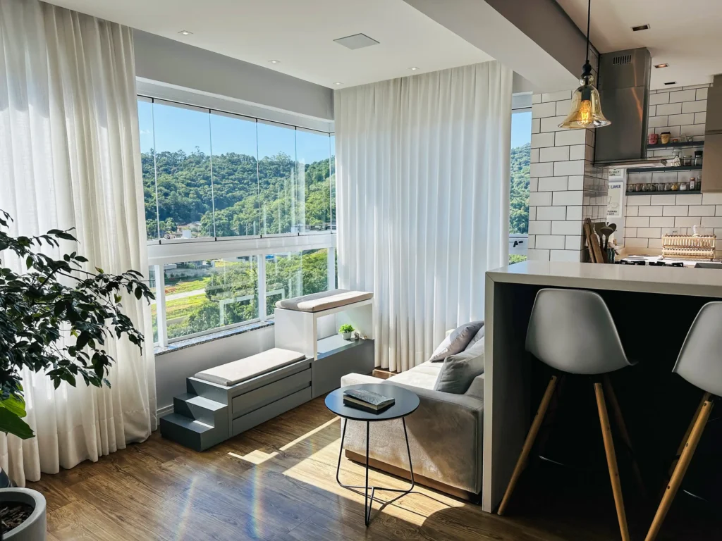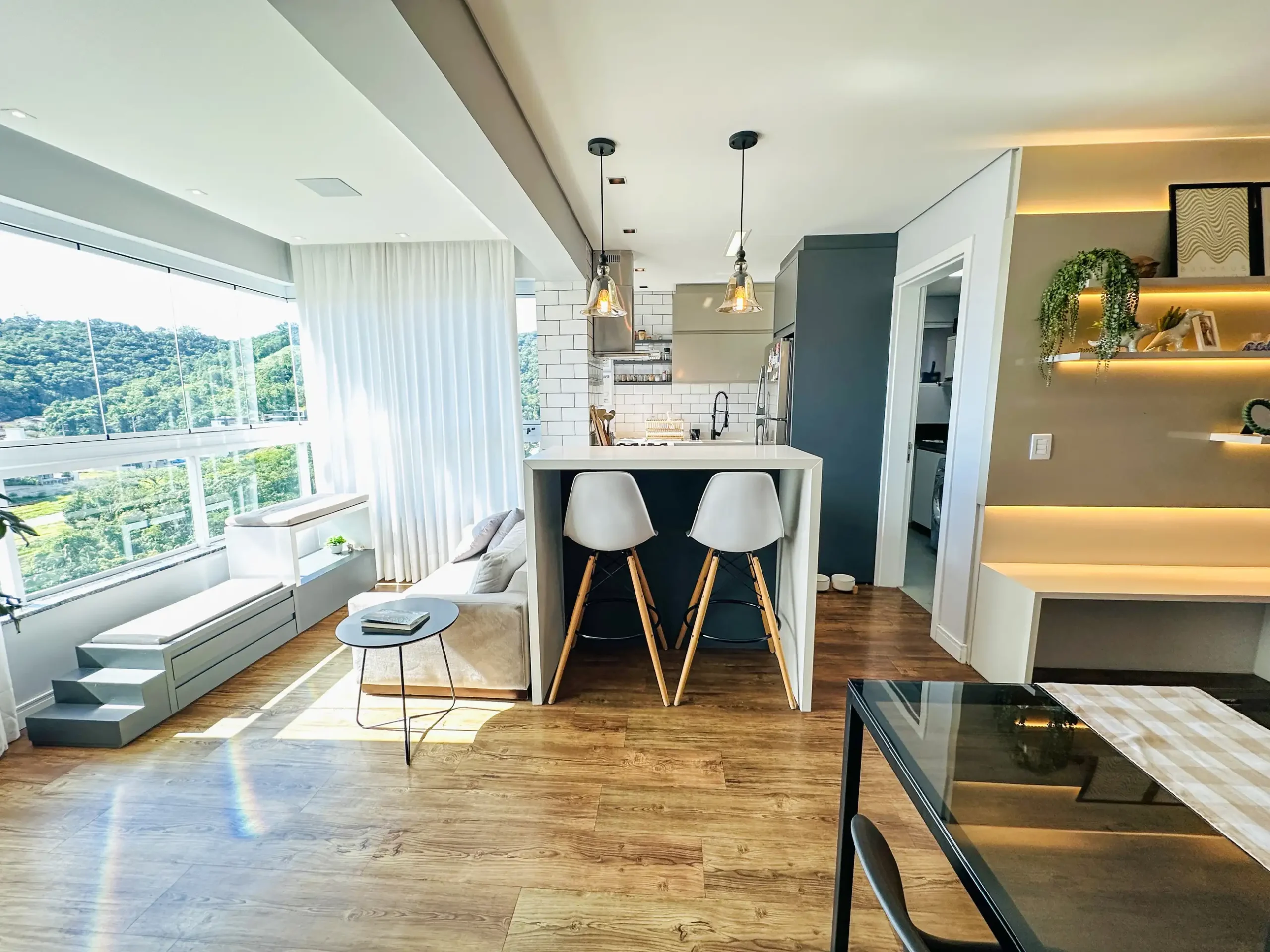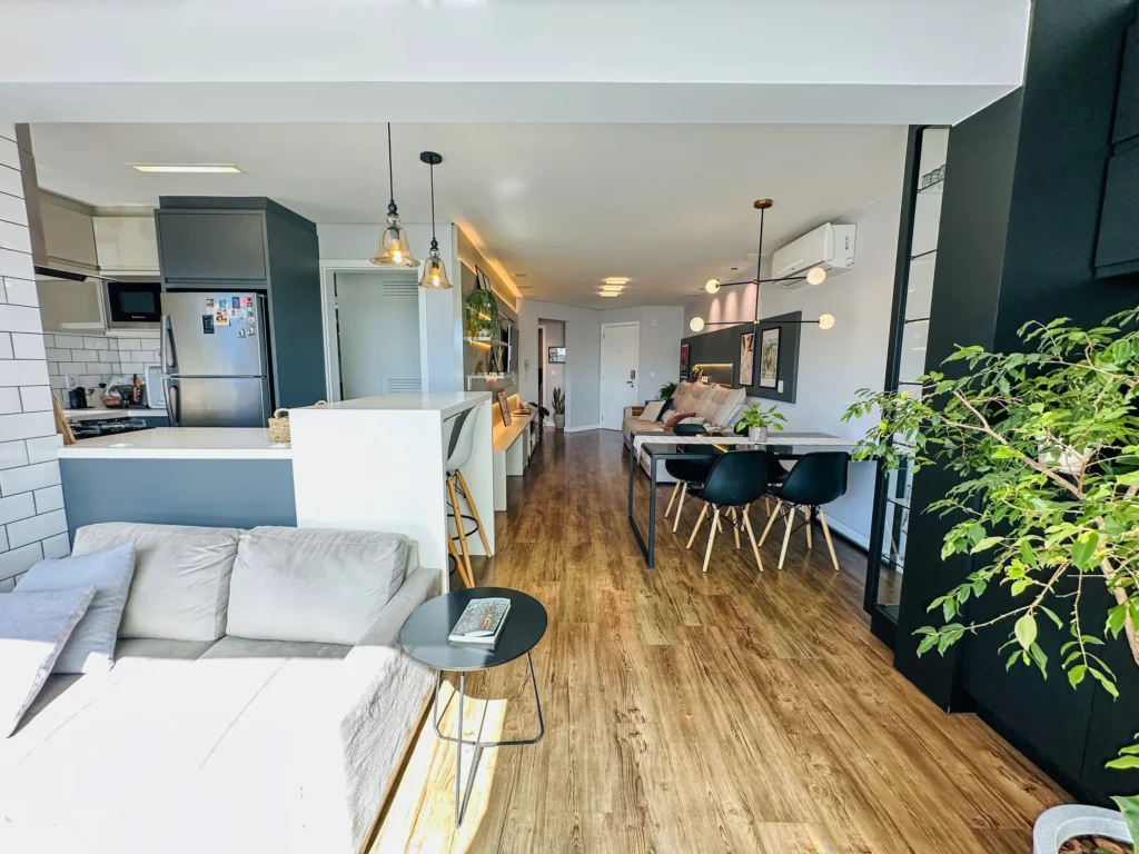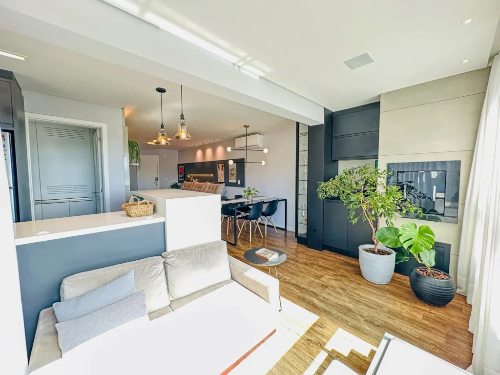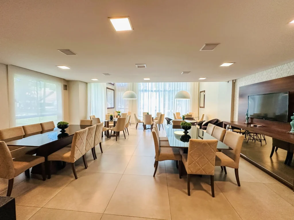 – Sala de estar e jantar em living integrado;