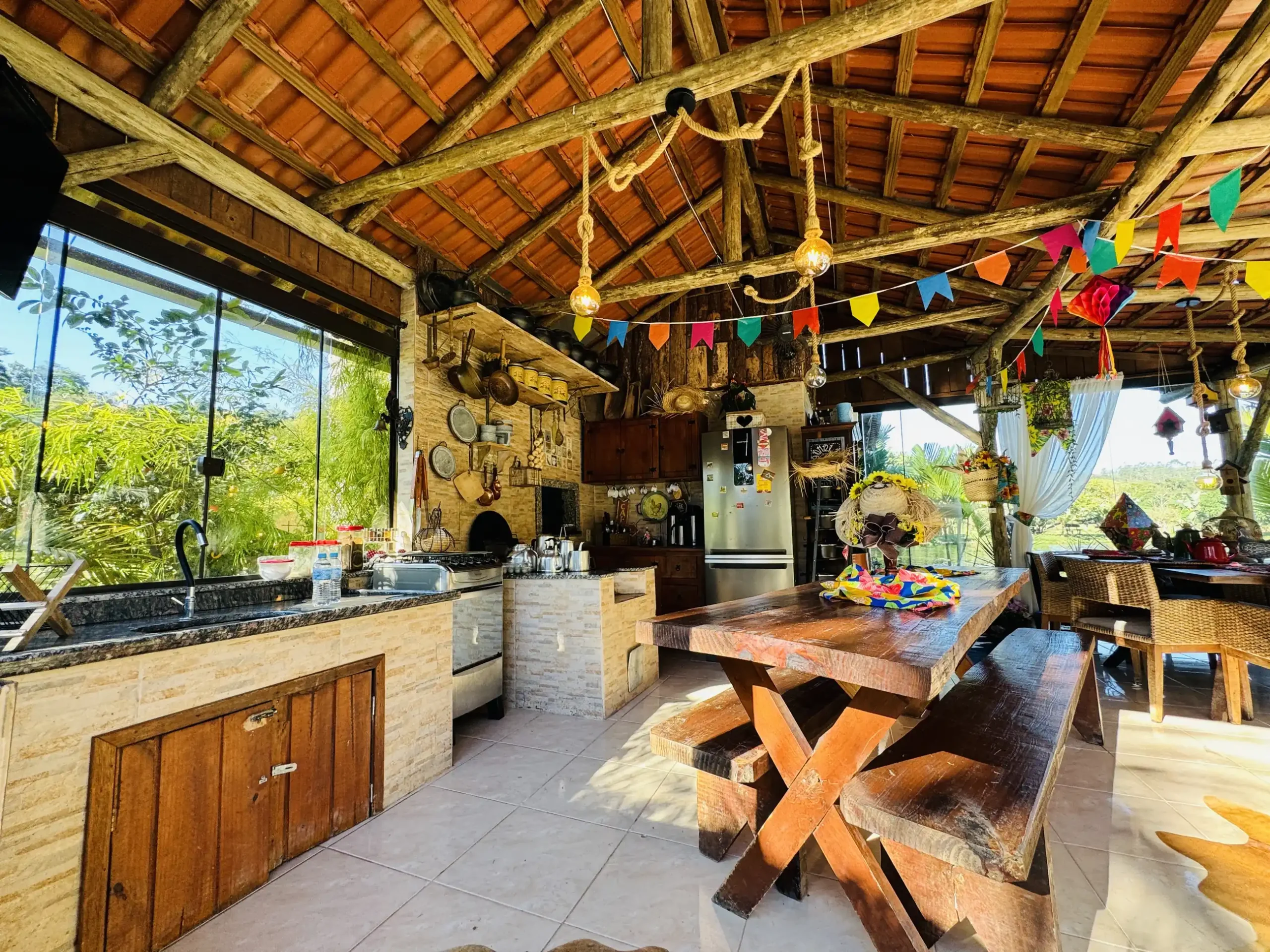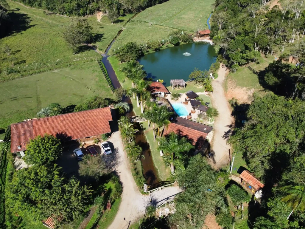 Casa principal, casa de chacreiro, rancho com 8 baias de cavalo, chalé rústico, área de festas com piscina, lagoa, pastagem e muito mais.