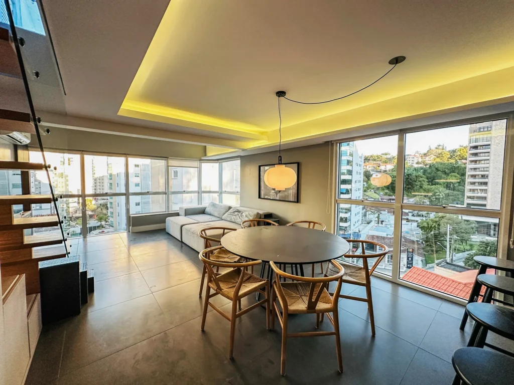 Cobertura duplex no Jardim Blumenau com 138m², 3 dormitórios (1 suíte com closet), área de festas privativa e terraço com vista. Mobiliada, 3 vagas individuais, em condomínio exclusivo e localização nobre.
