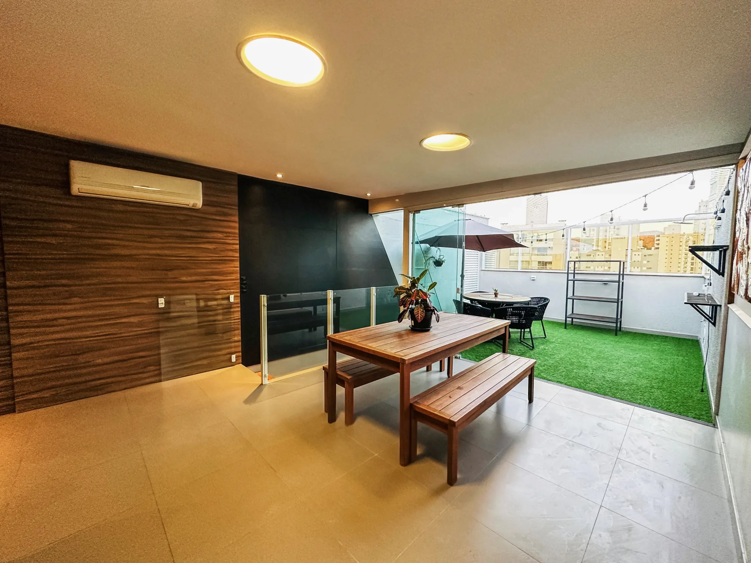 Cobertura duplex no Jardim Blumenau com 138m², 3 dormitórios (1 suíte com closet), área de festas privativa e terraço com vista. Mobiliada, 3 vagas individuais, em condomínio exclusivo e localização nobre.